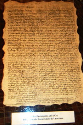Hiện nay chỉ còn tài liệu năm 1631, ghi trên giấy da bằng tiếng Hy Lạp và Latinh về tất cả chi tiết phép lạ ở Lanciano.